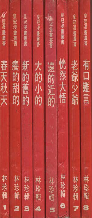 During the Mid 1970s Taiwan saw an increase in comics published after the ease of censorship mostly "Pirate Editions". This is an 8-book set published by Crown Comics in Traditional Chinese of Dave Berg's Lighter Side of material. Although the cover artwork copies US Dave Berg Books. There are no prices on the books, but I assume these were sold in two 4-Book Sets because inside it translates to NT$100 (New Taiwan Dollar) per 4-Book Set.